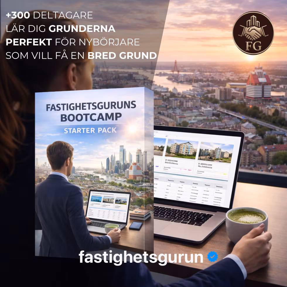 Bootcamp Starter är en komprimerad version av vår 12:e upplaga av Fastighetsguruns mest populära digitala fastighetsutbildning som genomfördes i Mars – skapad för dig som vill förstå hur fastighetsaffärer faktiskt fungerar i praktiken. Helt i din egen takt genomför du kursen.