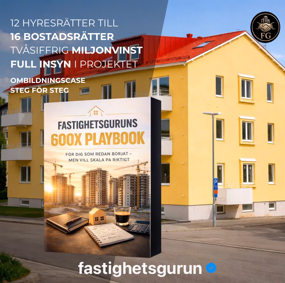 The 600X Playbook är utvecklad för att ge dig en komplett modell för att bygga större, smartare och mer långsiktiga projekt. Här får du verktygen som är skillnaden mellan att ”testa fastigheter” och att faktiskt bygga lönsamhet.